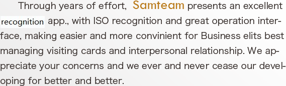 SamCard is a fantasic visiting card reader with high recognition accuracy and speed.